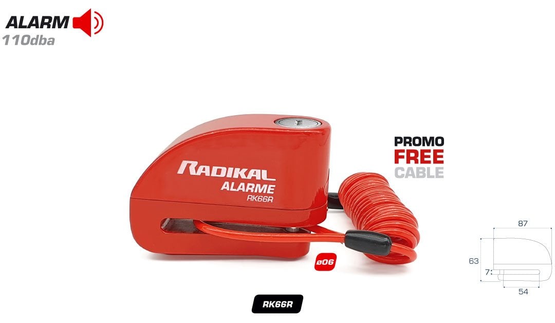 RADIKAL / RK66R Motosiklet Disk Kilit Alarmı 110db Güçlendirilmiş Su Geçirmez Kilit